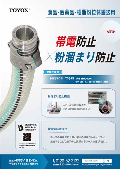 食品・医薬品・樹脂粉粒体に最適|粉だまり・帯電防止継手