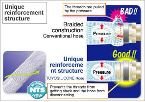 特殊な糸抜け防止構造で耐圧性能が良く、継手付近でのトラブル防止ができ安全・安心